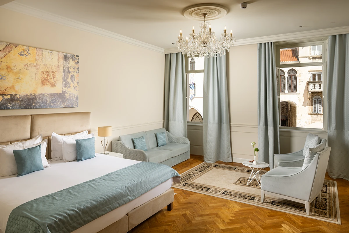 A beautiful, newly renovated pearl, located on the main city square Pjaca opened its doors to the dear guests in April this year. With 34 luxuriously decorated rooms equipped with the best fabrics, amenities and technical equipment represents the great asset to the historic center of Split.